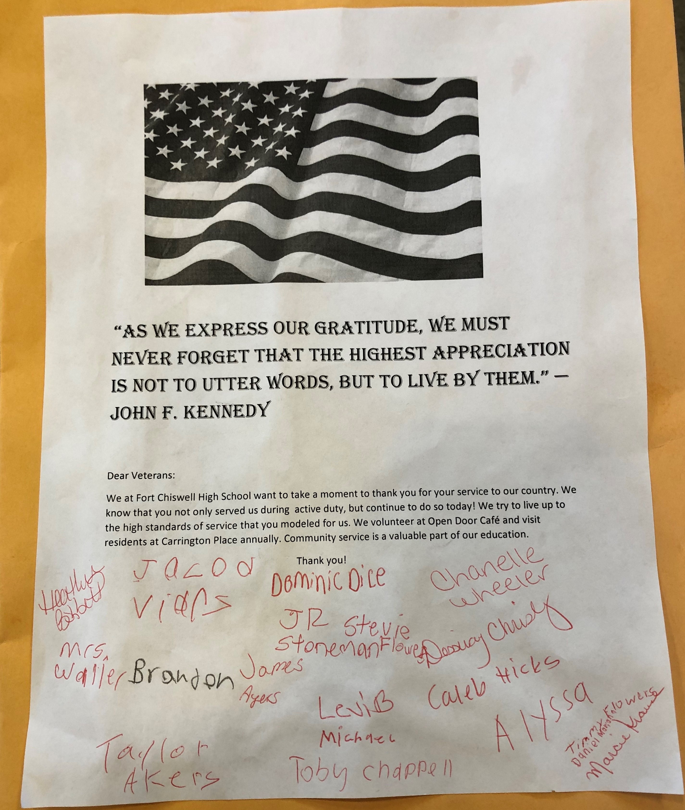 We were honored to help co-host this month's Vet to Vet Café event and look forward to continuing for many months to come! Thanks to other sponsors from Southwest Virginia Veteran's Partnership and Wythe Hospice of Southwest Virginia, we had a great turnout! We need your help to spread the word for the next event later this month on Thursday, February 27th. See the bottom of this email for the full schedule. Not only did Veterans receive a free meal thanks to generous sponsors, but the opportunity created for fellowship among Veterans is priceless. Special thanks to Mrs. Crouse's Fort Chiswell High School students for sending a very sincere and thoughtful letter thanking Veterans for their service, along with some delicious cookies! | |